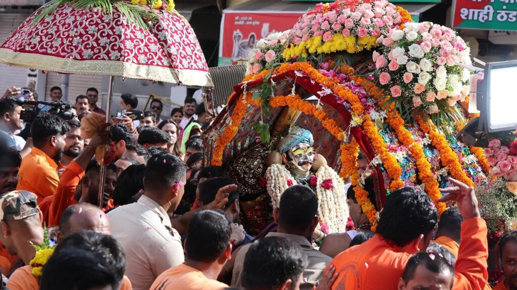 उज्जैन: श्रावण मास के तीसरे सोमवार को महाकालेश्वर मंदिर में भक्तों की भारी भीड़ उमड़ी। दोपहर तक लगभग 3 लाख श्रद्धालुओं ने भगवान महाकाल के दर्शन किए। विनायक चतुर्थी के अवसर पर महाकाल का गणेश स्वरूप में विशेष श्रृंगार किया गया था। शाम को भगवान महाकाल की तीसरी सवारी निकाली गई, जिसमें चंद्रमौलेश्वर पालकी में विराजित हुए, जबकि मनमहेश जी को हाथी पर और शिव-तांडव स्वरूप को गरुड़ रथ पर सजाया गया। सवारी शिप्रा घाट पहुंची, जहां भगवान का पूजन-अर्चन किया गया। इसके बाद यह सवारी वापस मंदिर लौटी। सवारी की शुरुआत में मंदिर के सभामंडप में चंद्रमौलेश्वर का विधिवत पूजन किया गया। पालकी के मंदिर से निकलते ही सशस्त्र पुलिस बल ने भगवान को सलामी दी। इस भव्य जुलूस में घुड़सवार पुलिस, सशस्त्र बल, होमगार्ड, भजन मंडली, झांझ मंडली और पुलिस बैंड ने भी हिस्सा लिया।प्रदेश के अन्य शहरों में भी भक्तों ने शिव मंदिरों में पूजा-अर्चना की और भोले बाबा का आशीर्वाद प्राप्त किया। श्रावण मास में महाकाल की सवारियों का विशेष महत्व है, जिसे देखने के लिए दूर-दूर से श्रद्धालु उज्जैन पहुंचते हैं।
