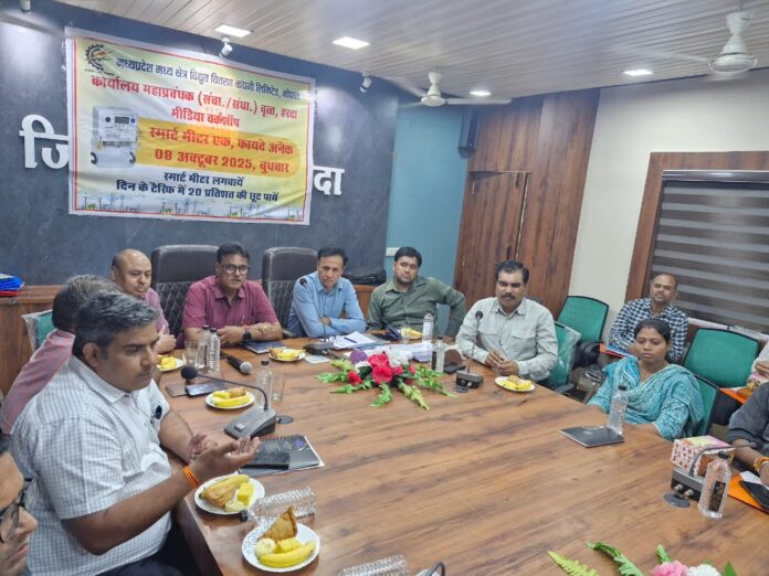 भोपाल/ हरदा 08 अक्टूबर। स्मार्ट मीटर उपभोक्ताओं को नए टैरिफ आर्डर के अनुसार अब खपत के आधार पर दिन के टैरिफ में सुबह 9 बजे से शाम 5 बजे तक उपयोग की गई बिजली पर 20 प्रतिशत की छूट मिल रही है। हरदा वृत्त में 698 स्मार्ट मीटर उपभोक्ताओं को सितंबर 2025 माह में 01 लाख, 53 हजार की छूट प्रदान की गई है। इनमें से स्मार्ट मीटर उपभोक्ताओं के लिए यह सभी छूट अथवा प्रोत्साहन की गणना सरकारी सब्सिडी (यदि कोई हो) को छोड़कर की जा रही है। यह उपभोक्ता श्रेणियों के लिए विशिष्ट नियमों और शर्तों के आधार पर दिन के विभिन्न समय के दौरान खपत की अवधि के अनुसार ऊर्जा शुल्क पर लागू होगी। यह बात मध्य क्षेत्र विद्युत वितरण कंपनी के महाप्रबंधक (स्मार्ट मीटरिंग सेल) श्री सी.के.पवार ने स्मार्ट मीटर से होने वाले लाभ तथा मध्य क्षेत्र विद्युत वितरण कंपनी द्वारा उपभोक्ता हित में चलाई जा रही शासन की योजनाओं जैसे ग्रामीण क्षेत्र में 5 रुपये में नवीन कनेक्शन, सोलर रूफटॉप आदि को आम लोगों तक पहुंचाने के उद्देश्य से बुधवार को जिला पंचायत सभागार, हरदा में आयोजित मीडिया कार्यशाला में कही।